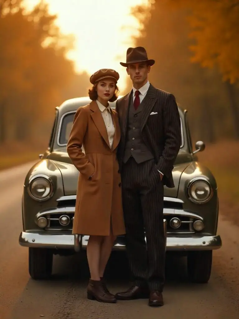 Bonnie and Clyde – Go vintage gangster glam with matching fedoras and attitude.