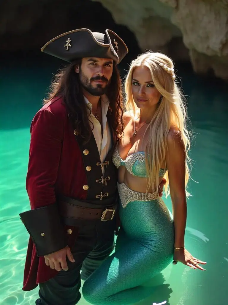 Pirate and Mermaid – One sails the seas, the other rules the waves.