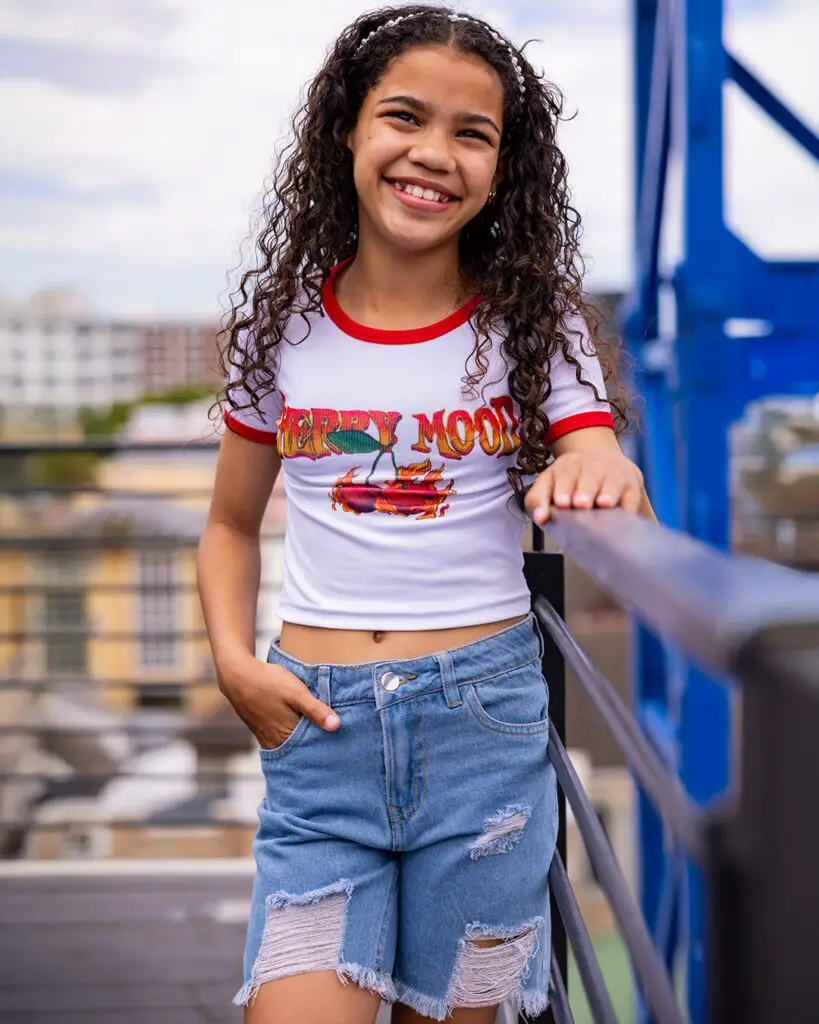 Mini Skirt with a Ringer Tee – A cute and playful summer outfit.