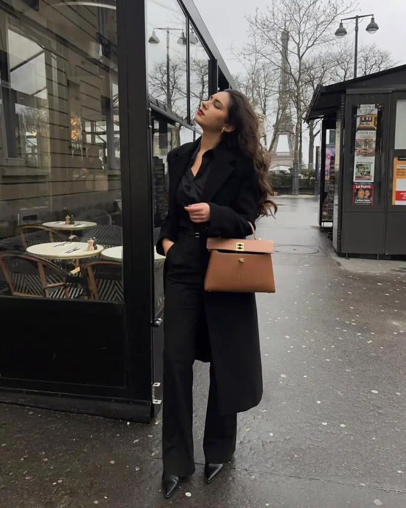 8. Longline Coat and Black Pants