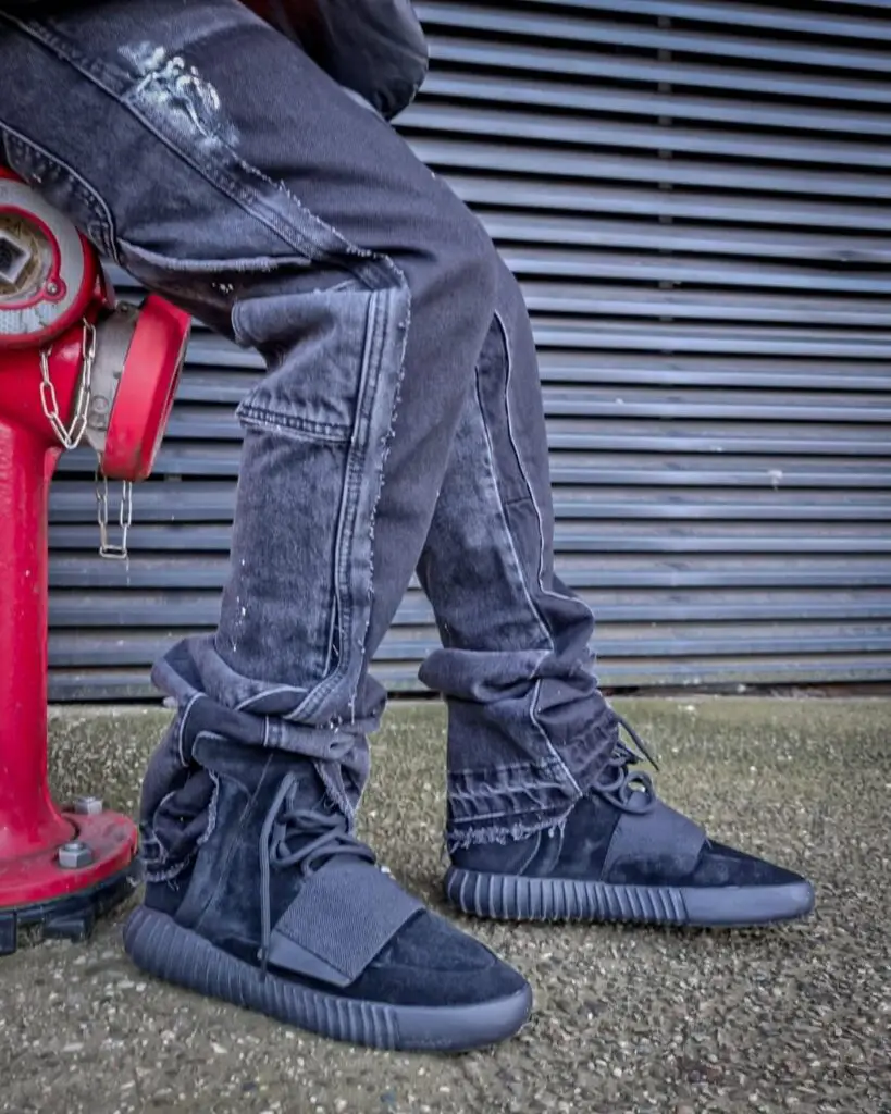 Pair your black Yeezy 750s with black joggers and an oversized hoodie for a sleek monochrome look that exudes urban cool.