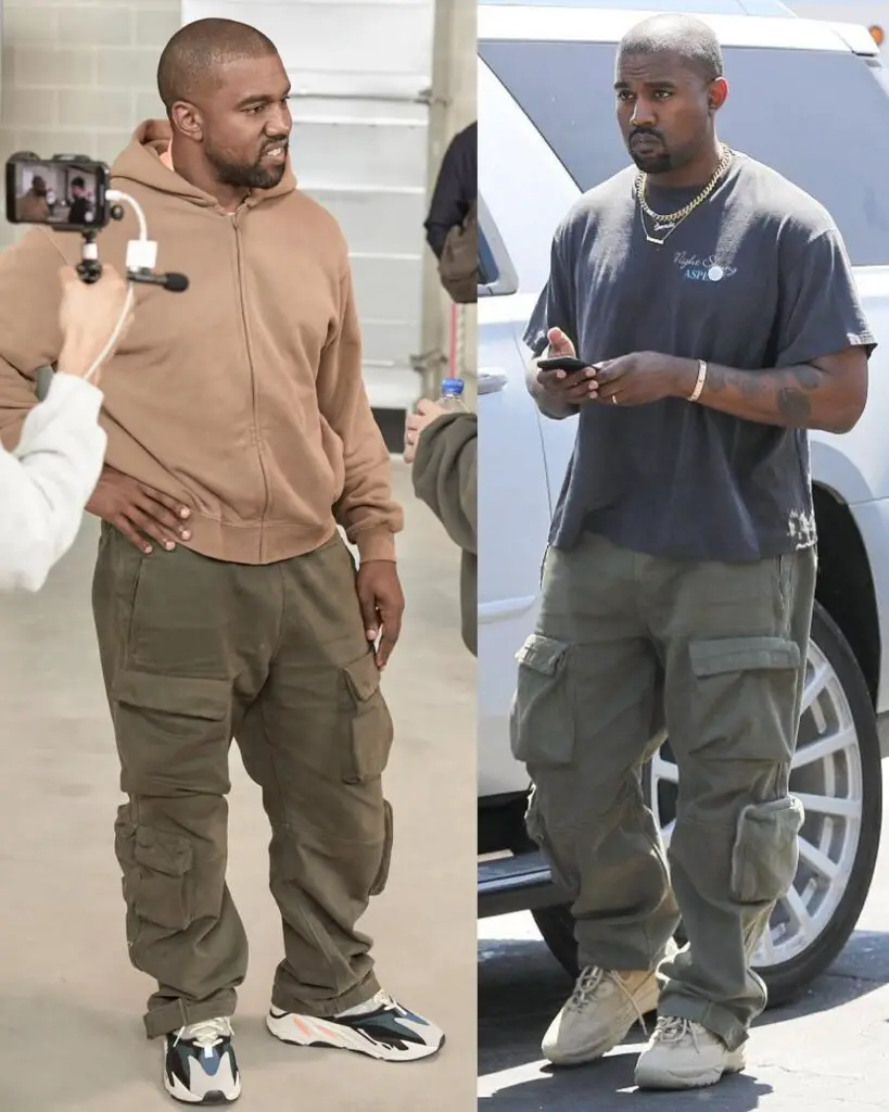 Olive or khaki cargos are a natural match for rugged Yeezy Boots.