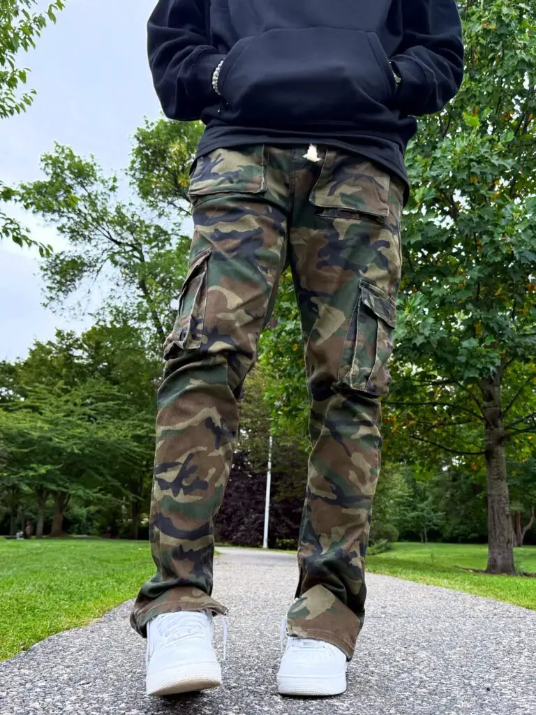 13. Olive Bomber Jacket & Black Cargo Pants