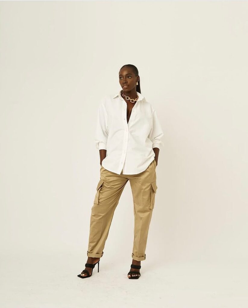 12. White Oversized Shirt & Khaki Pants