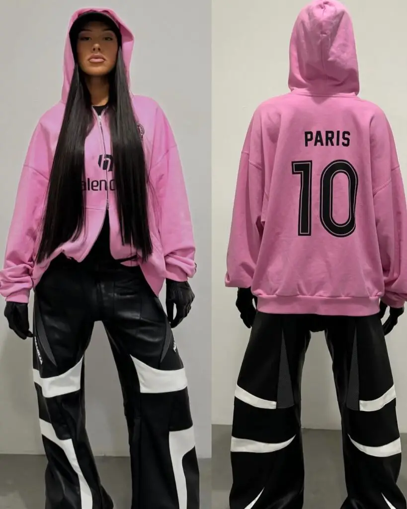 A balanced outfit mixing sporty and feminine streetwear energy.