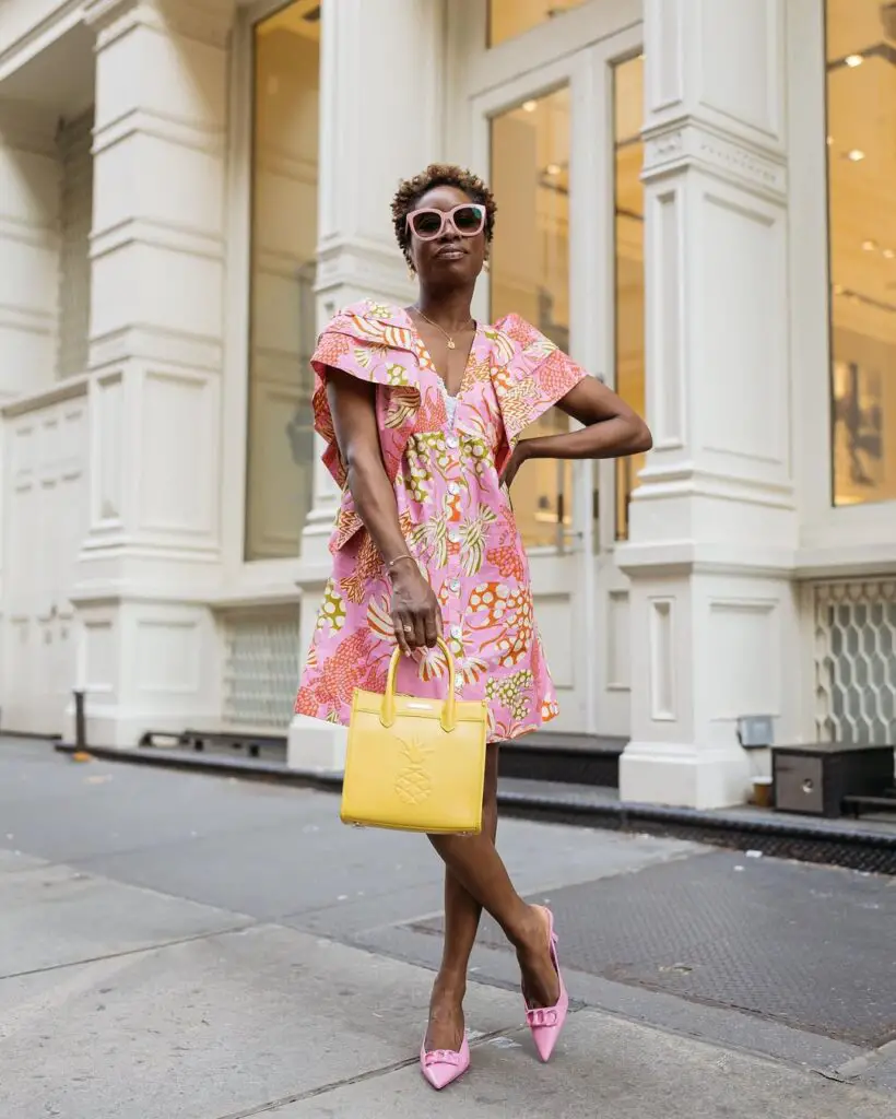 Match a yellow clutch with a floral sundress for brunch dates.